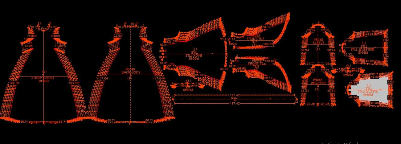 Detailed Technical Drawing: Each digital sewing pattern includes detailed technical drawings that provide a clear visual representation of the garment's design and construction. These drawings are meticulously crafted to convey important details such as seams, stitching lines, darts, pleats, notches, and any other relevant features.