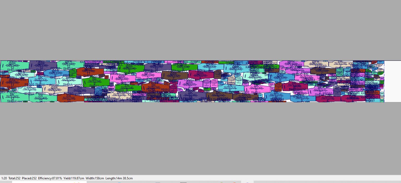 1. Markeran bahan dihasilkan secara otomatis menggunakan algoritma otomatis mengikuti standar industri Internasional untuk mendapatkan penggunaan kain yang paling efisien dengan analisa lebih dari 10,000 markeran pola