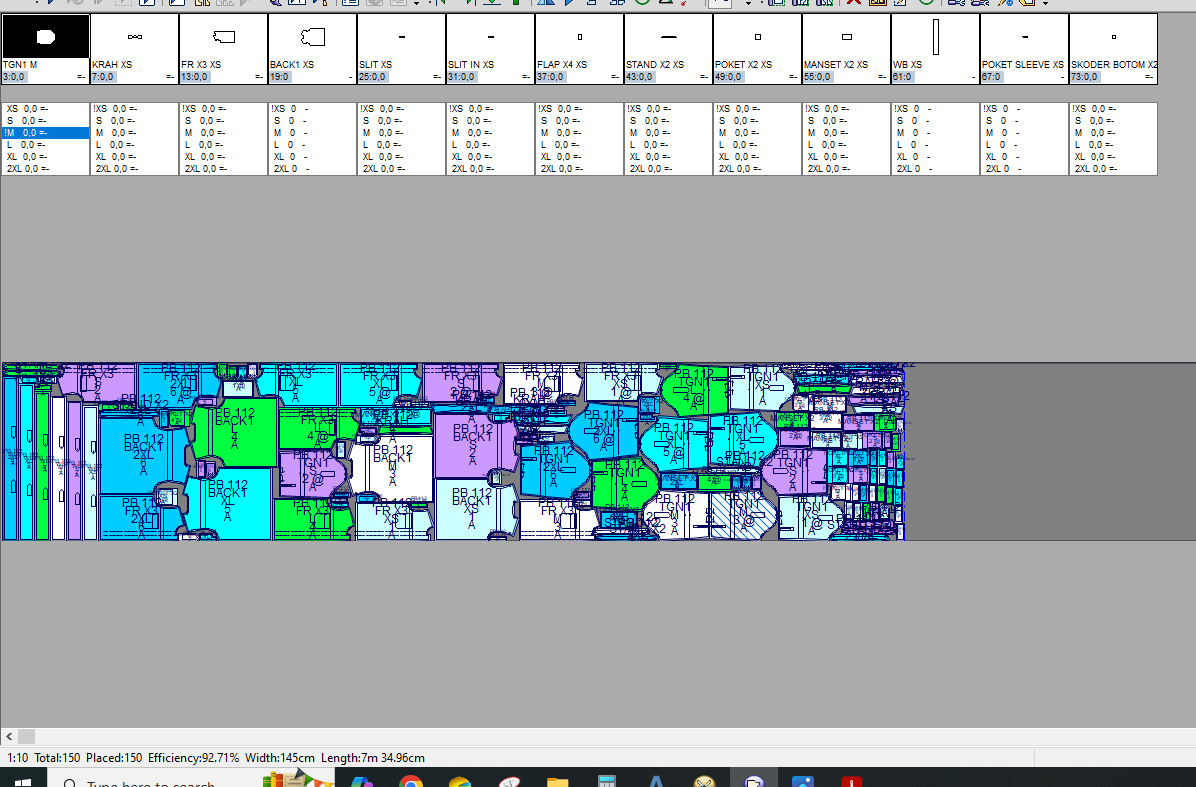 1. Markeran bahan dihasilkan secara otomatis menggunakan algoritma otomatis mengikuti standar industri Internasional untuk mendapatkan penggunaan kain yang paling efisien dengan analisa lebih dari 10,000 markeran pola