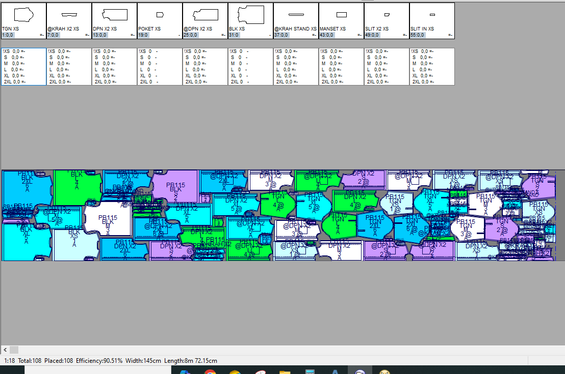 1. Markeran bahan dihasilkan secara otomatis menggunakan algoritma otomatis mengikuti standar industri Internasional untuk mendapatkan penggunaan kain yang paling efisien dengan analisa lebih dari 10,000 markeran pola