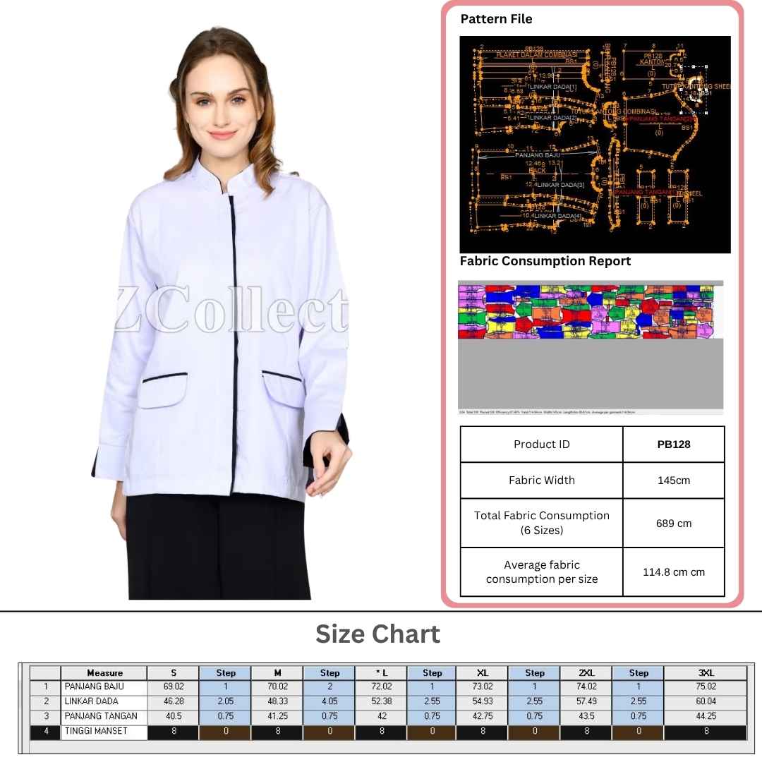 Size Chart Table : Each digital pattern from Polabook includes a detailed size chart to ensure accuracy and precision. Our size chart provides measurements for every available size, making it easy for you to choose the perfect fit for your designs. Whether you’re working on ready-to-wear or custom garments, our professionally crafted patterns come with clear size guidelines to streamline your production process.