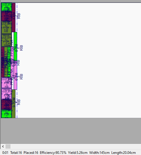 1. Markeran bahan dihasilkan secara otomatis menggunakan algoritma otomatis mengikuti standar industri Internasional untuk mendapatkan penggunaan kain yang paling efisien dengan analisa lebih dari 10,000 markeran pola