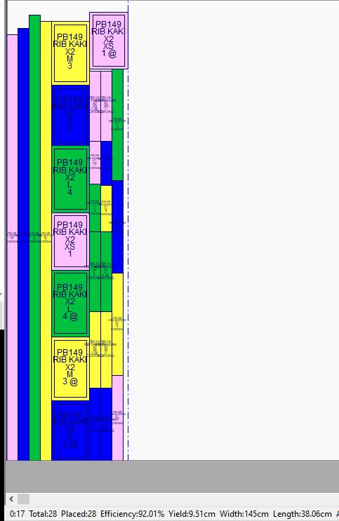 1. Markeran bahan dihasilkan secara otomatis menggunakan algoritma otomatis mengikuti standar industri Internasional untuk mendapatkan penggunaan kain yang paling efisien dengan analisa lebih dari 10,000 markeran pola