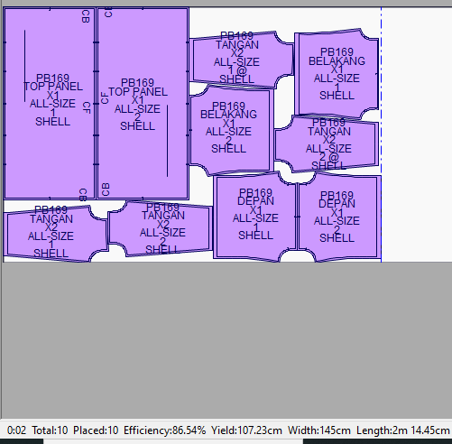 1. Markeran bahan dihasilkan secara otomatis menggunakan algoritma otomatis mengikuti standar industri Internasional untuk mendapatkan penggunaan kain yang paling efisien dengan analisa lebih dari 10,000 markeran pola