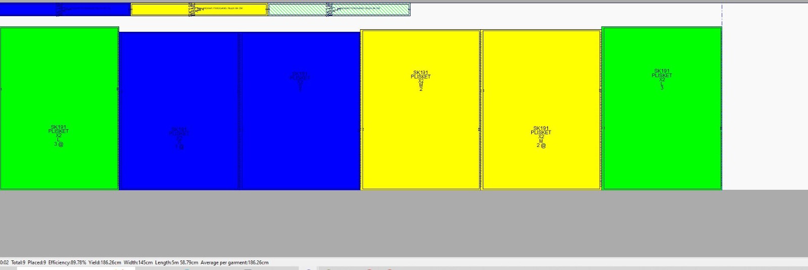 1. Markeran bahan dihasilkan secara otomatis menggunakan algoritma otomatis mengikuti standar industri Internasional untuk mendapatkan penggunaan kain yang paling efisien dengan analisa lebih dari 10,000 markeran pola