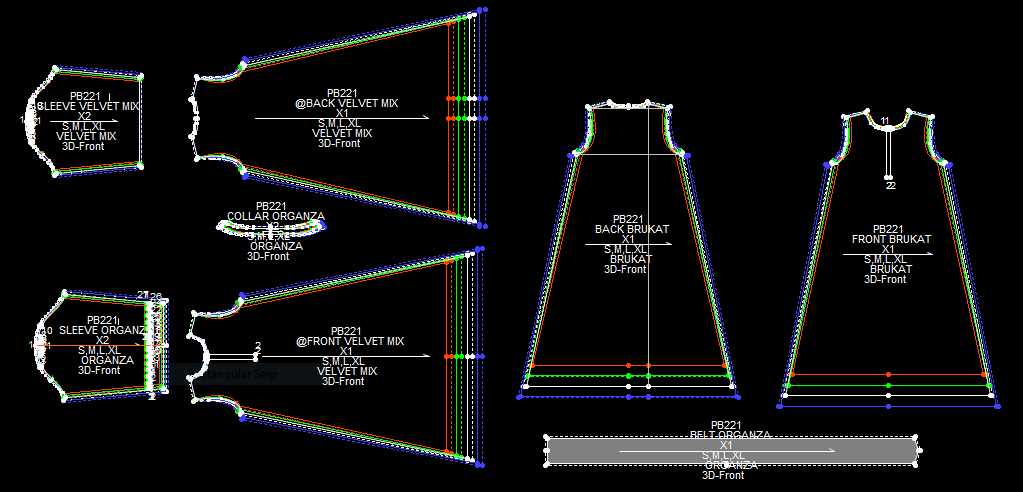 1. Markeran bahan dihasilkan secara otomatis menggunakan algoritma otomatis mengikuti standar industri Internasional untuk mendapatkan penggunaan kain yang paling efisien dengan analisa lebih dari 10,000 markeran pola